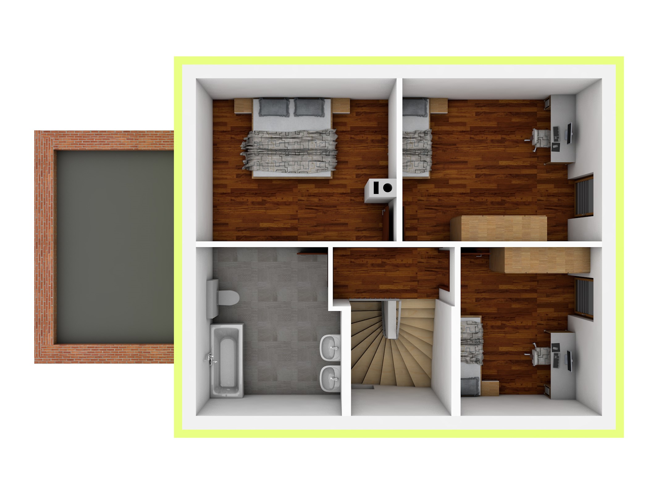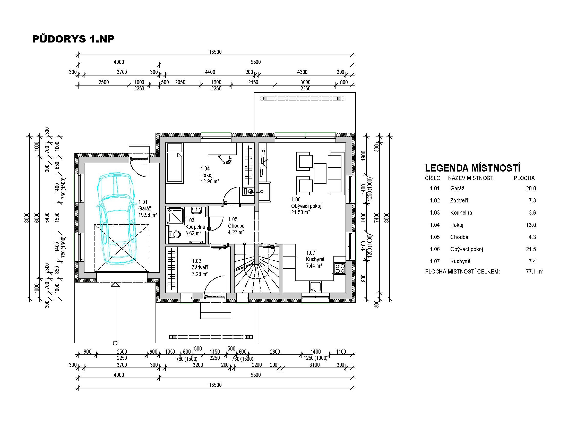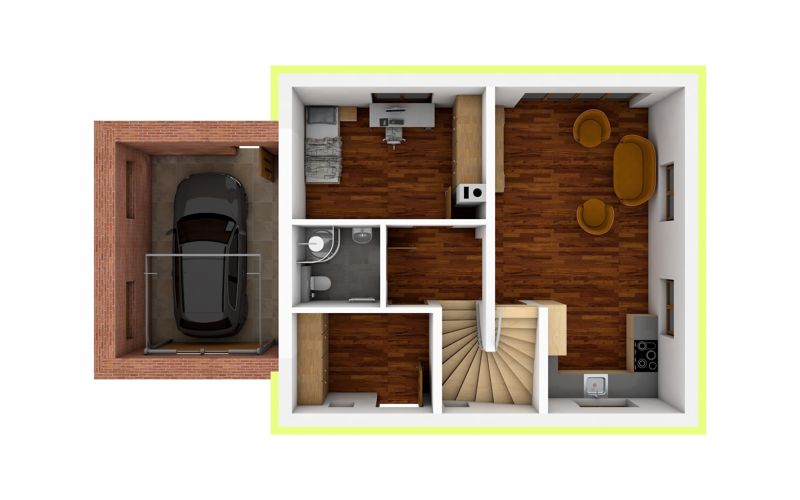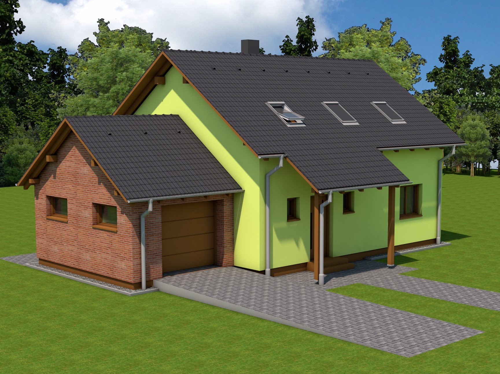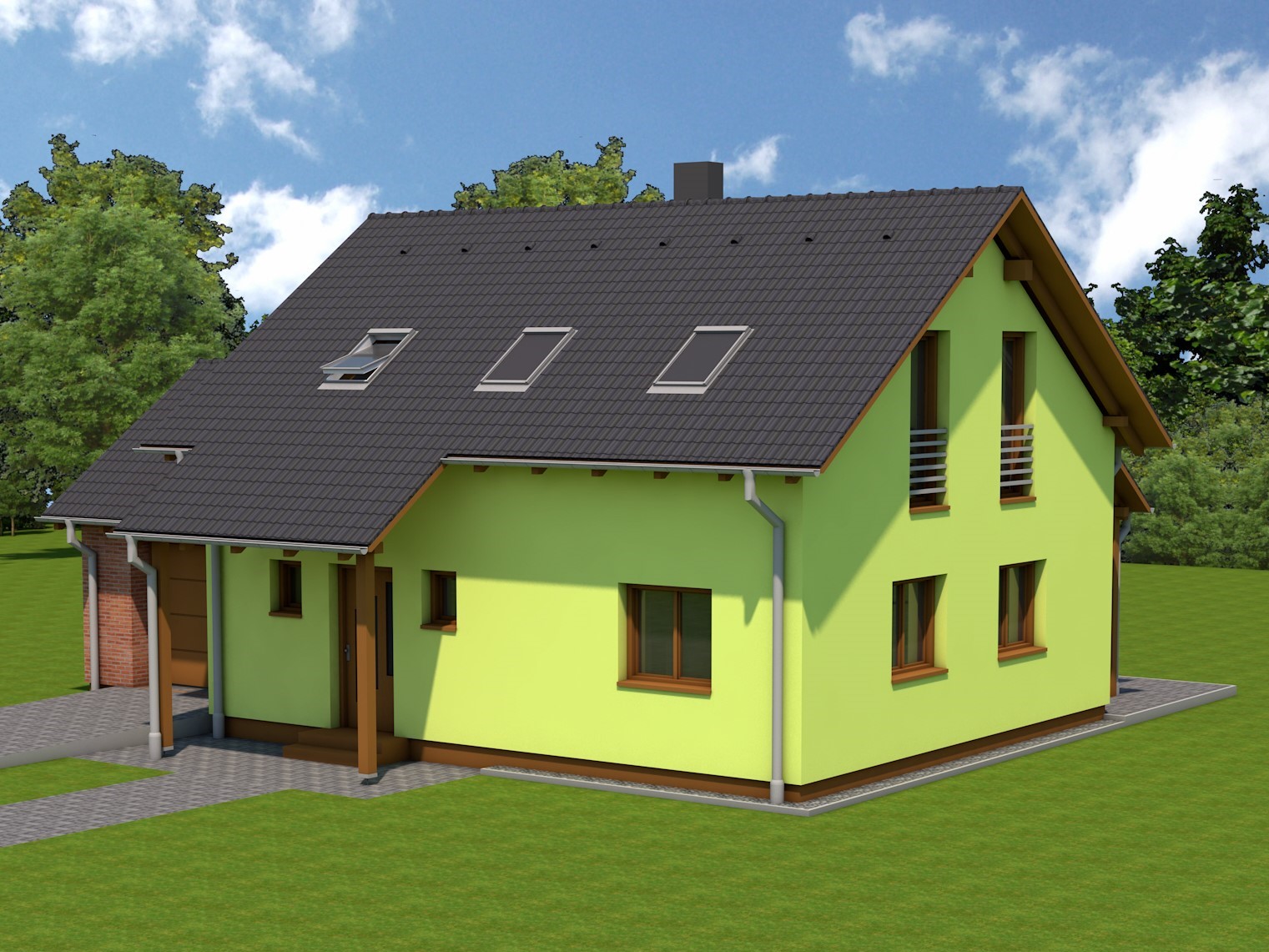 Moderní rodinný dům Simona nabízí komfortní bydlení až pro pětičlennou rodinu v souladu s moderními trendy. Ve spodním patře naleznete společenskou místnost s kuchyňským koutem, ze které snadno vstoupíte na terasu. Nechybí pokoj pro hosty či pracovna a chodba. Podkroví domu je čistě klidové a k dispozici nabízí hlavní ložnici a dva neprůchozí dětské pokoje. Samozřejmostí je koupelna s toaletou v každém patře domu. Auto pohodlně zaparkujete v garáži hned u domu.