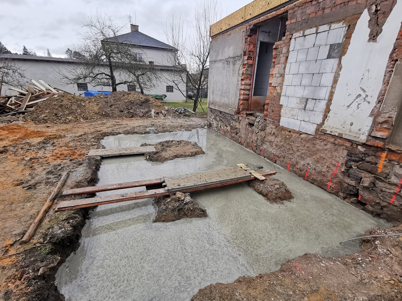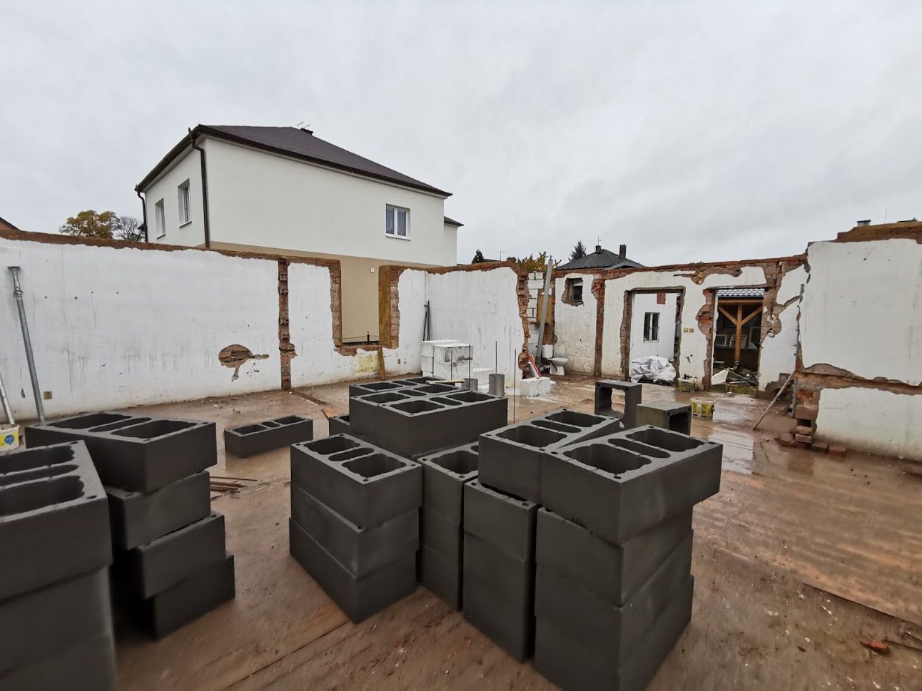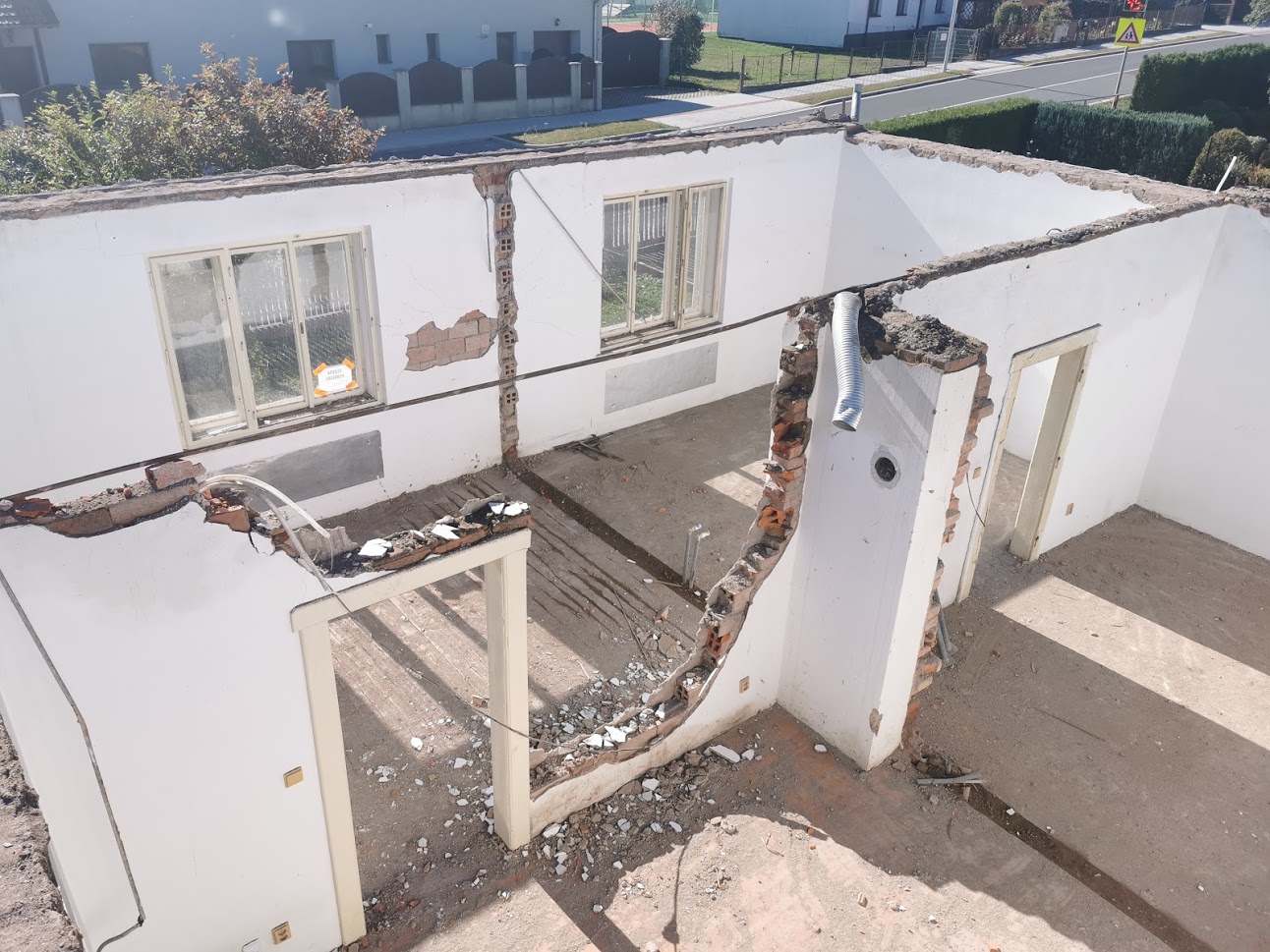 Chystáte se na rekonstrukci nevyhovujícího domu. Zde je malá ukázka toho, když se to vezme opravdu od podlahy. U této stavby jsme nejprve demontovali střechu, zdivo podkroví, stropy až nakonec zůstali pouze obvodové zdi 1.NP. Následovala opětovná výstavba plnohodnotného druhého patra a přístavby vstupní verandy z materiálu Ytong s monolitickým schodištěm do patra. Rekonstrukcím se spousta firem vyhýbá, protože se téměř s jistotou vždy objeví nějaký stavební kostlivec, kterého je nutné řešit s ohledem na funkčnost, ale také finance stavby. Hrubá stavba se nám povedla a s majiteli po dohodě dále pokračujeme na dokončení celého objektu, kde již kostlivci žádní nečekají.