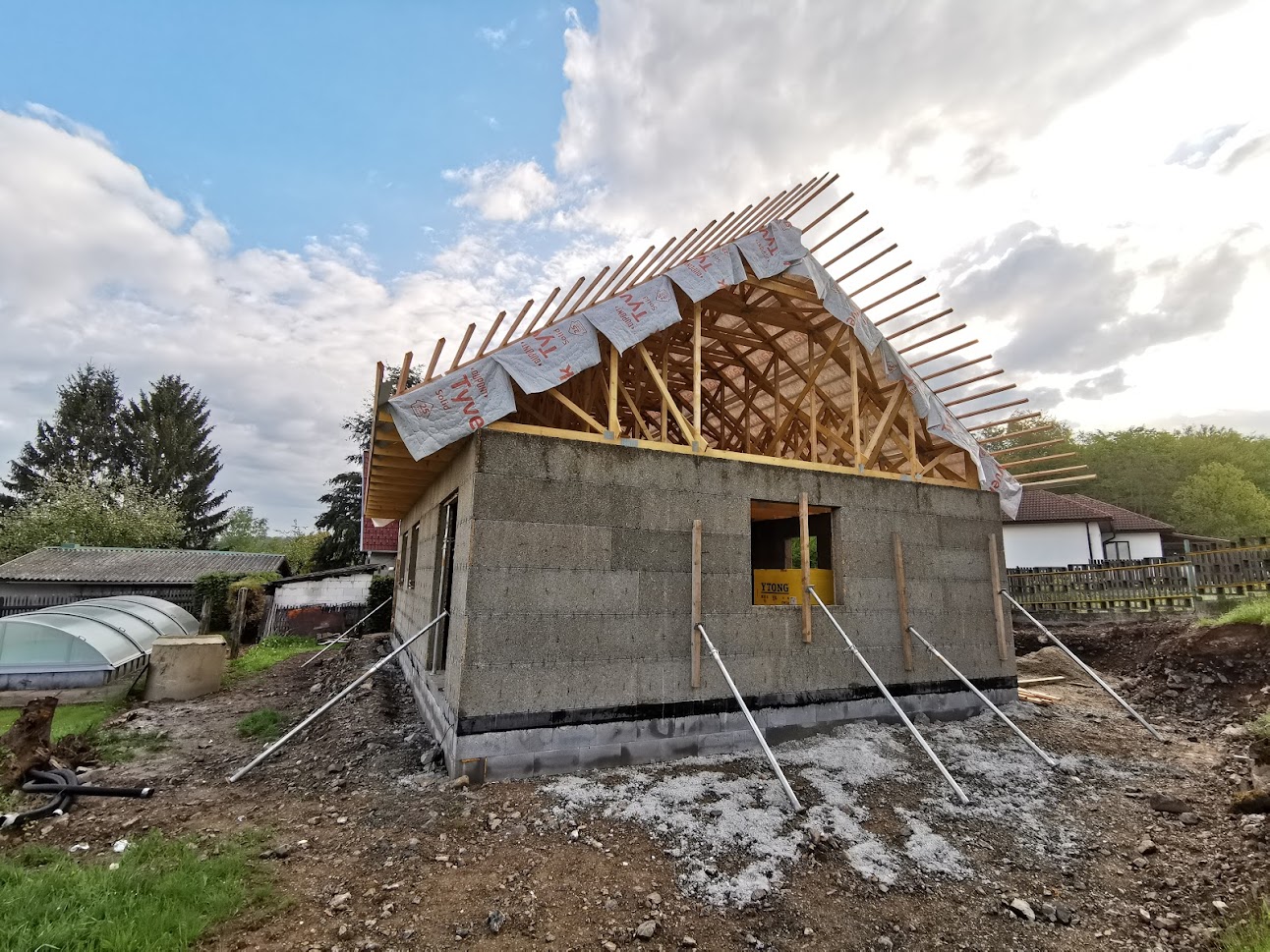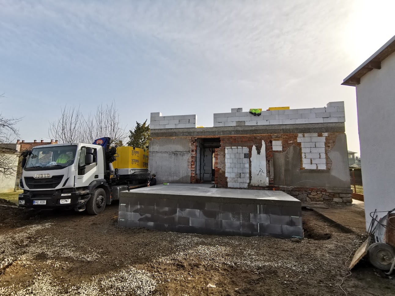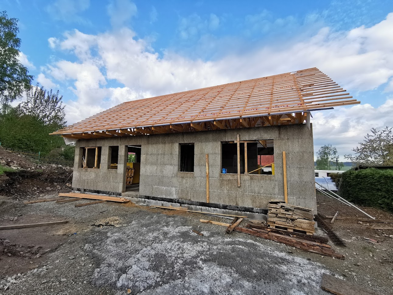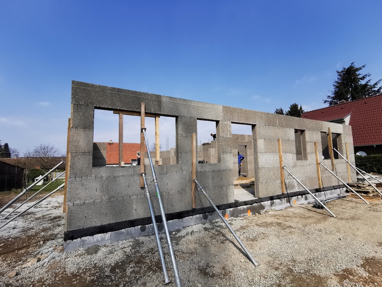 Realizace tohoto domu proběhla z bednících desek Velox s vyzdívkami z pórobetonových tvárnic YTONG. Zákazníkovi jsme zhotovili celou hrubou stavbu na klíč. Tento dům patří k menším, ale i tak má téměř 100m2. Díky svém jednoduchému tvaru se jedná o ekonomicky a energeticky nenáročný dům.