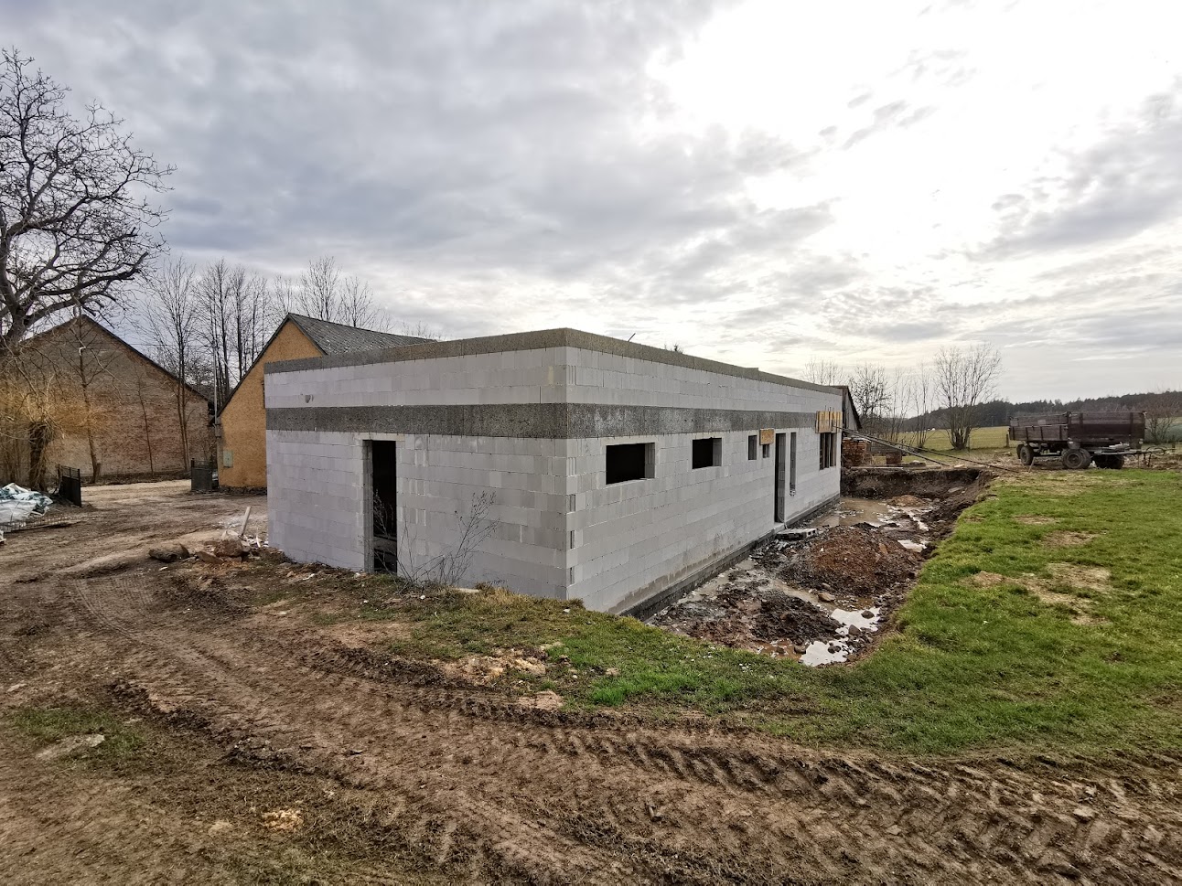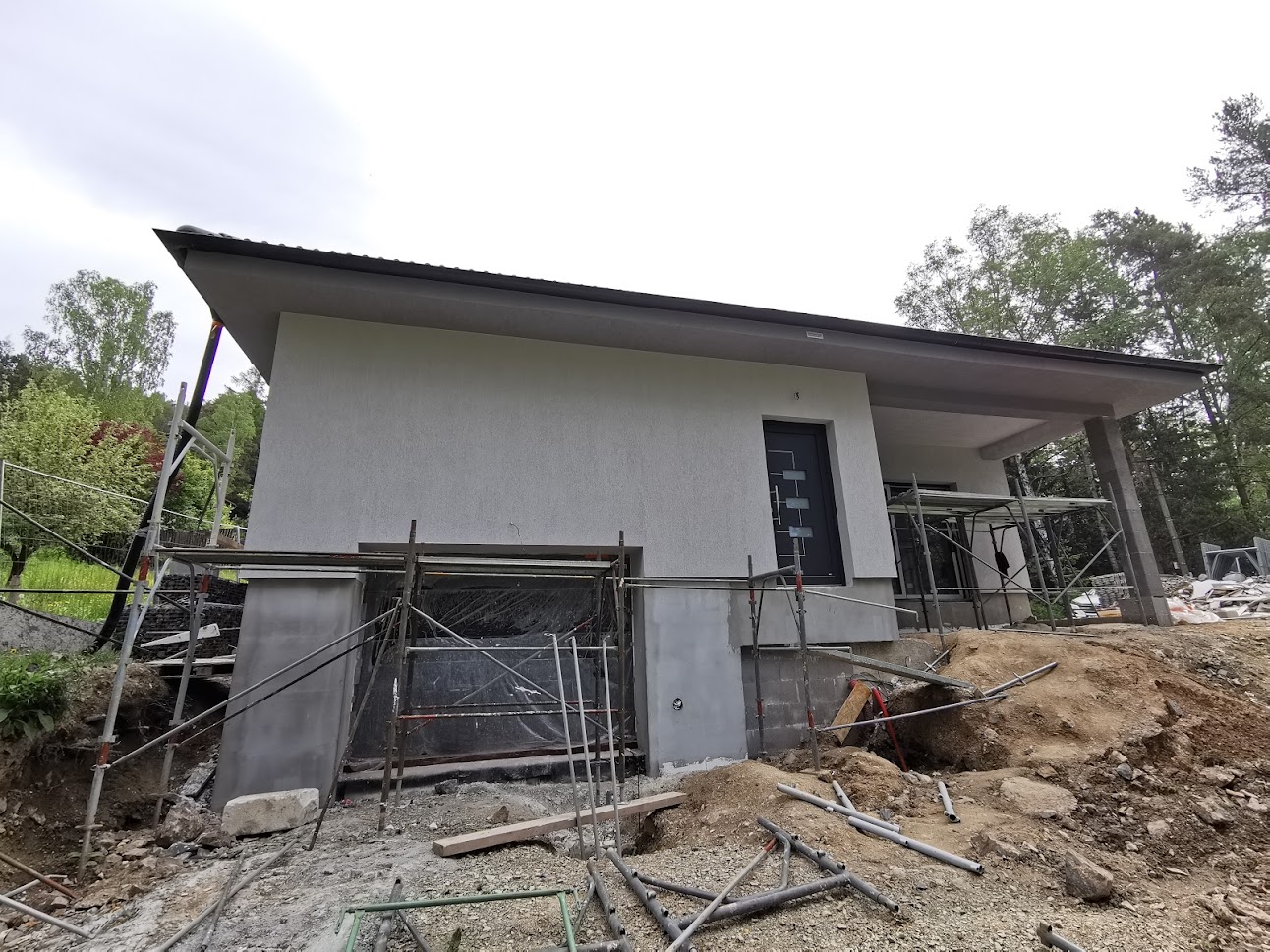Hrubá stavba – dům + garáž s plochou střechou