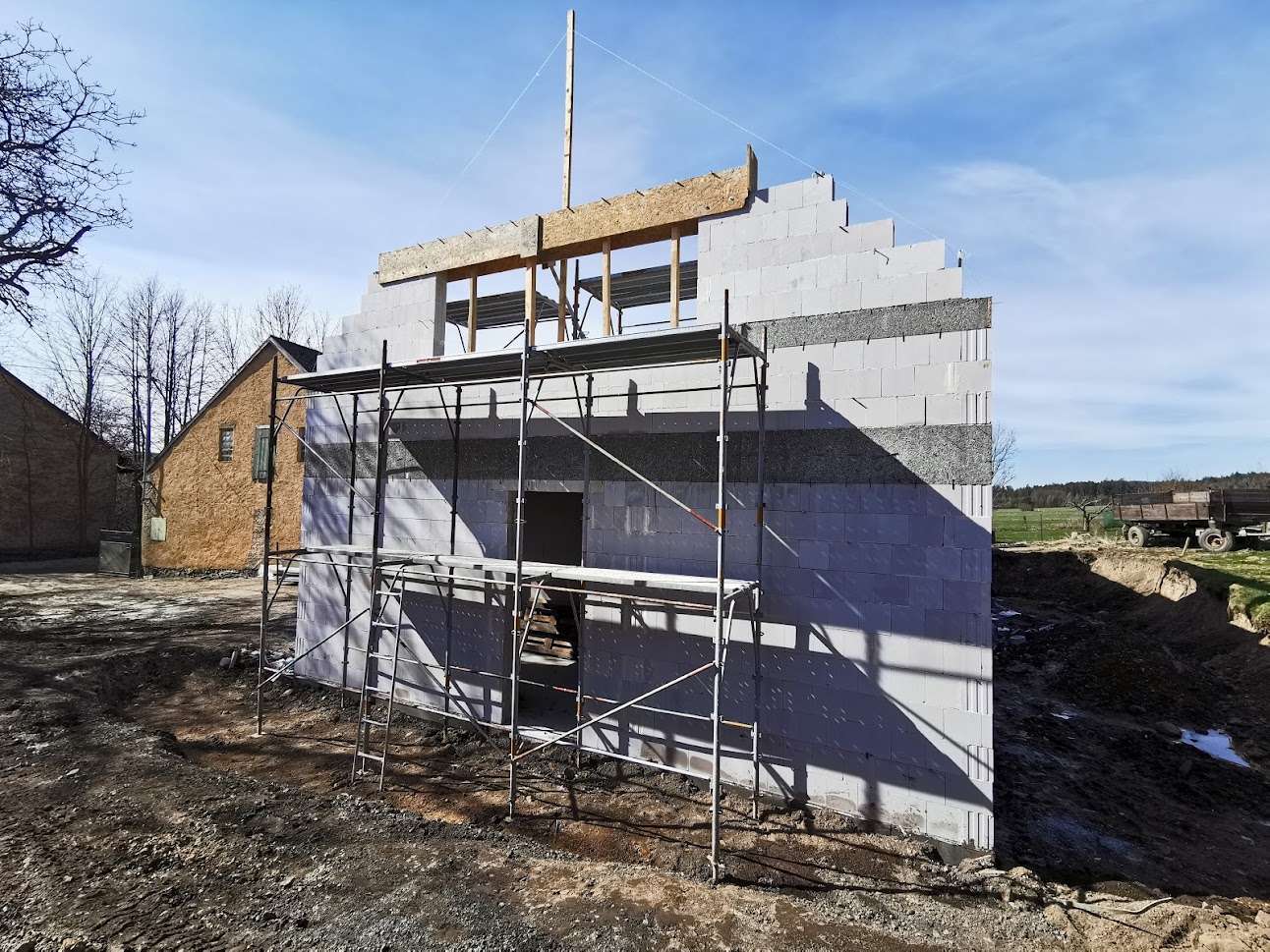 Stavba rozsáhlejšího rodinného domu o užitné ploše necelých 340m2. V tomto případě byl zvolen materiál VAPIS. Vápenopískové cihlové bloky s velkou objemovou hmotností a pevností v tlaku. Dům je realizován v místech původní stodoly, nejprve bylo tedy nezbytné odstranit současné základy a poté se realizoval samotný dům. Stavba má tradiční půdorysný tvar a vzhled, ale je plná moderních prvků pro maximální komfort jeho uživatelů. Na stavbě jsme se díky tomu setkali snad se všemi netradičními technickými detaily, které Vás mohou při stavbě potkat.